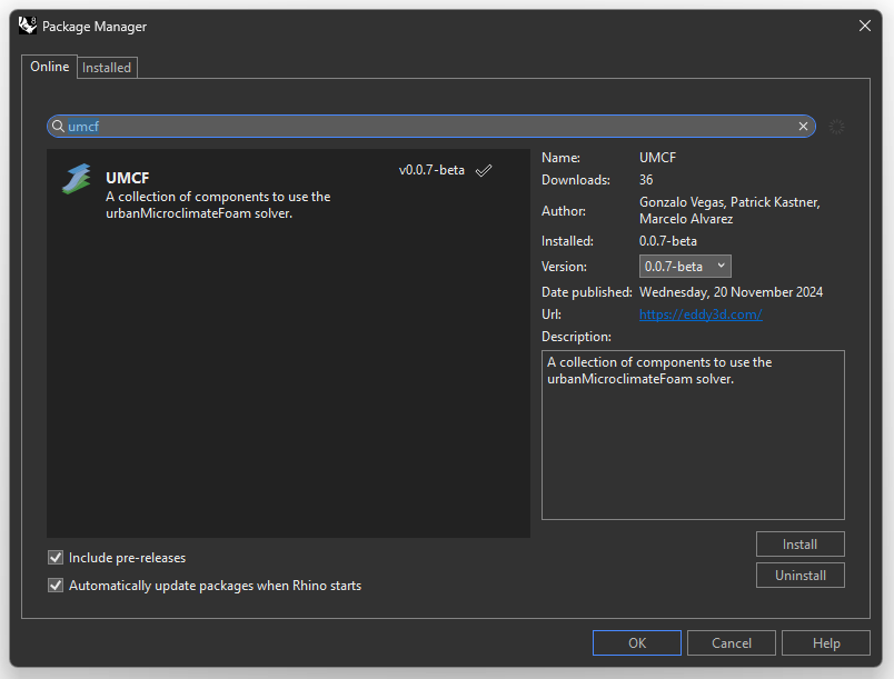 UMCFand click Install (View on RhinoPackages) - Optional: Check