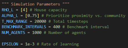 - Note: 'Timestep' refers to a single instance agent action (relocation); 20,000 timesteps mean the agents relocate a total of 20,000 times during the simulation.
