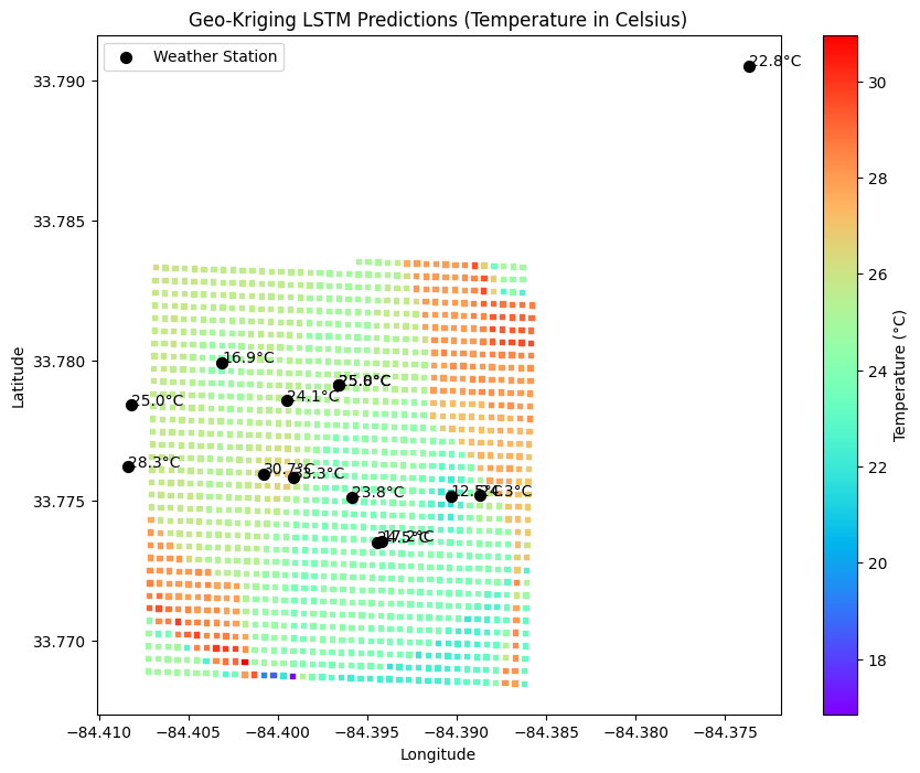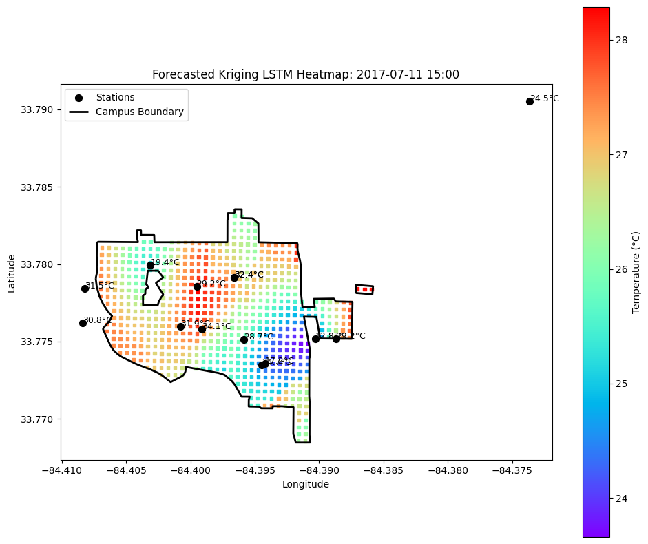 This project introduces a hybrid machine learning approach for urban microclimate prediction. It integrates time series forecasting (using LSTM and Transformer architecture) with spatial interpolation (Kriging) to model environmental conditions across the urban canopy layer.
